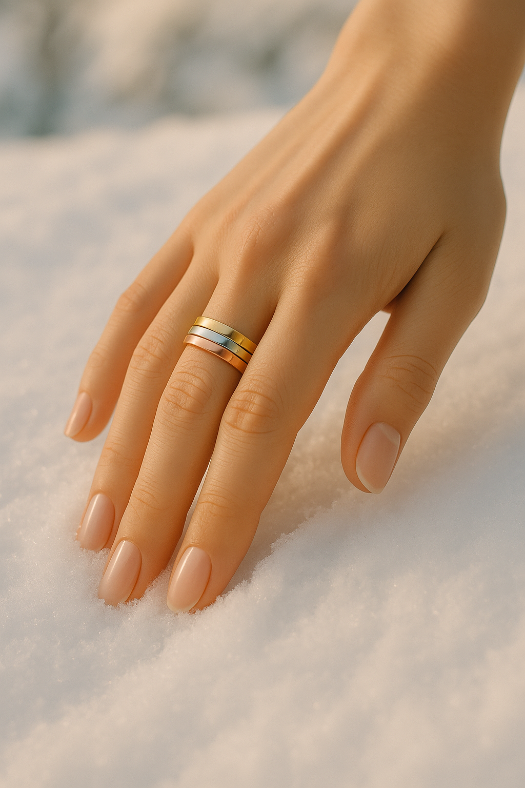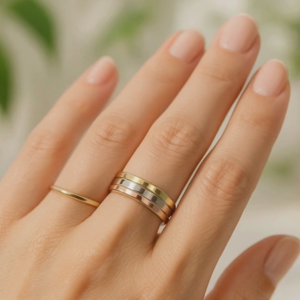 Tricolor design (Gold, Silver, Rose Gold)